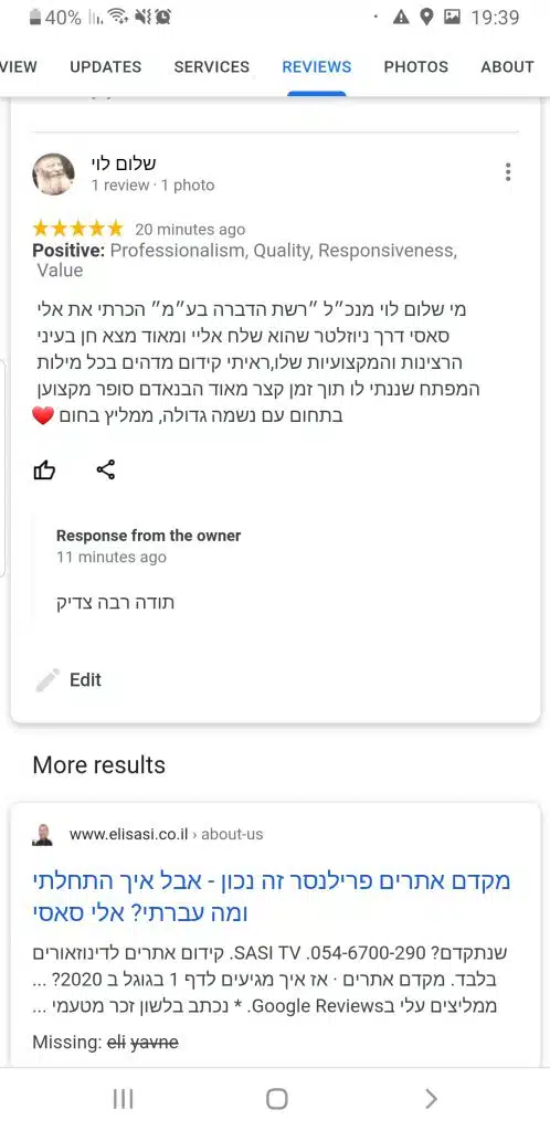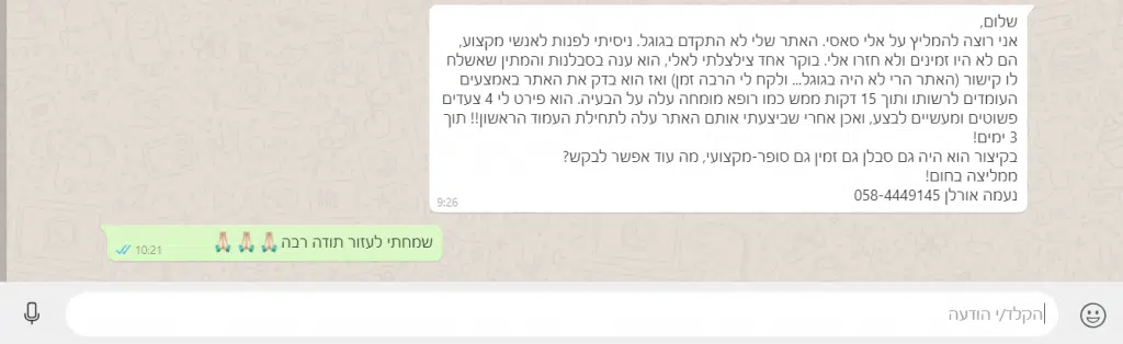 ממשיכים בבניית שאר דפי האתר שלכם עד לסיומו. תתחדשו 🙂 כמובן שתקבלו הדרכה כיצד לתפעל את האתר, להעלות תכנים, סרטונים, תמונות ועוד.